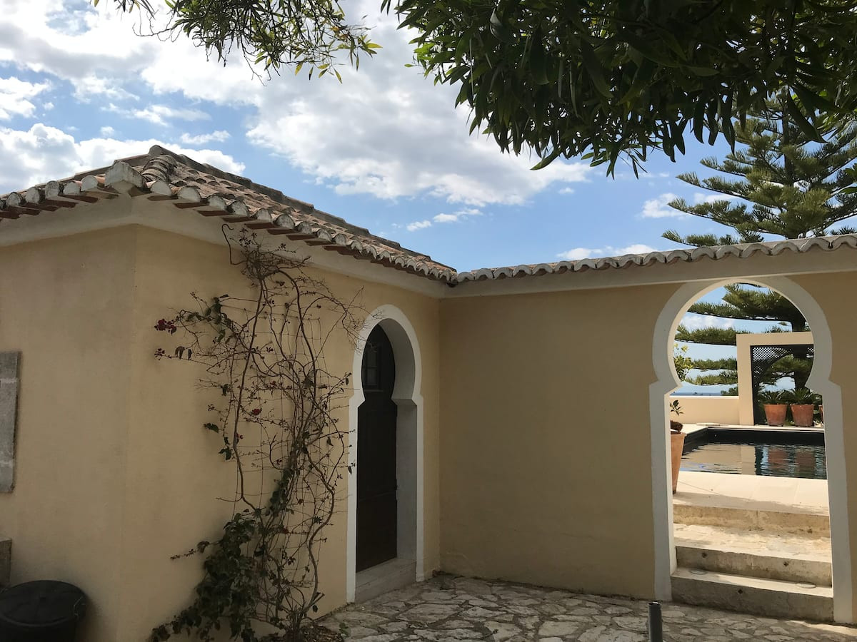 Implantée sur un domaine privé de 2 hectares, la maison est un véritable havre de paix, entourée de nature préservée. Une magnifique piscine domine le parc et le jardin, aménagés dans un pur style andalou. Les allées ponctuées de fontaines, de chemins d’eau et de cascades apportent fraîcheur et sérénité, au milieu des orangers et oliviers.