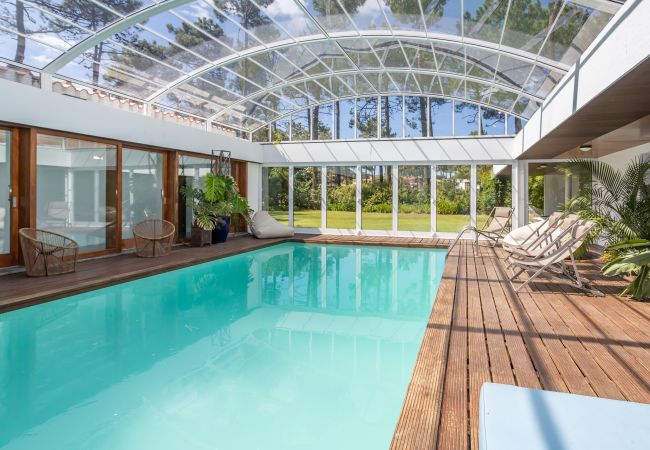Bienvenue à la Villa Golf & Praia, une villa moderne de plain-pied nichée au cœur du prestigieux Golf de Aroeira, un véritable havre de paix où confort et élégance se rencontrent. Conçue en forme de U, cette maison unique entoure une piscine intérieure couverte, qui se transforme en piscine extérieure grâce à une toiture en verre rétractable, offrant une expérience de baignade exceptionnelle en toute saison.